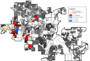 The City of Oviedo’s map showing where the new entertainment uses are allowed within the city.