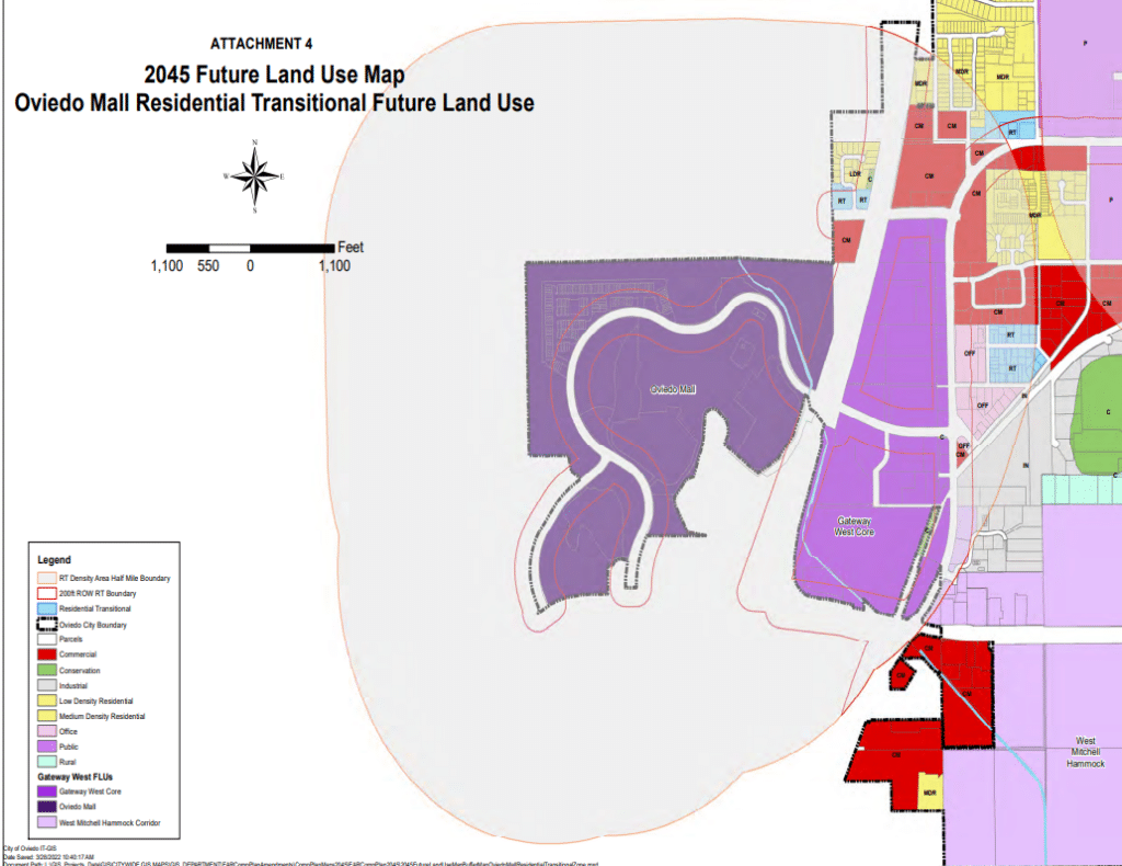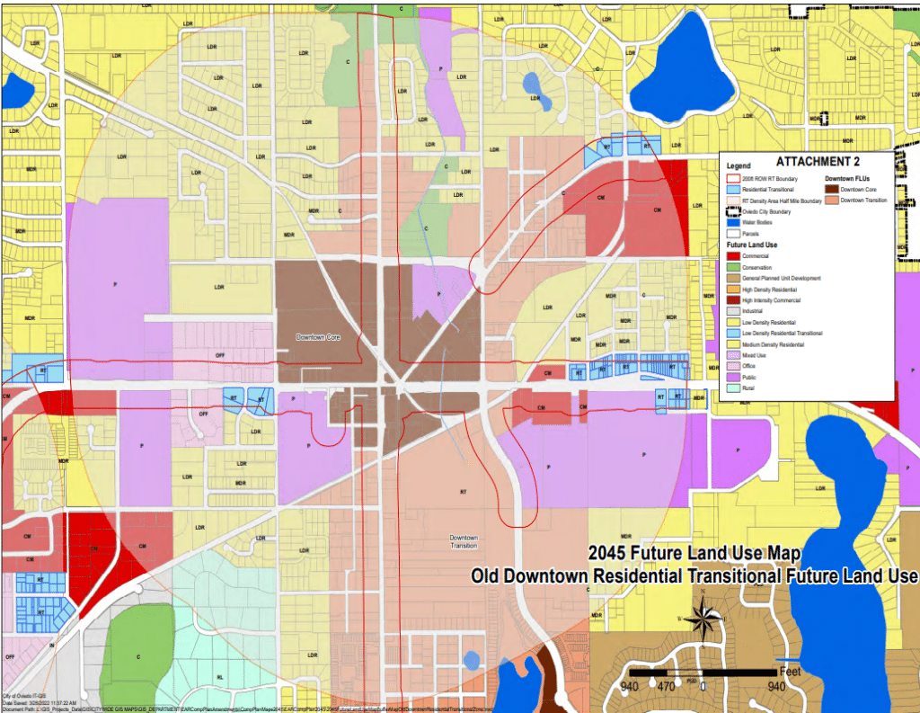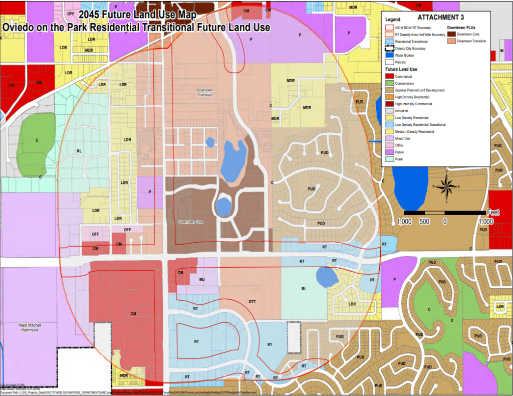 The land use, called “Residential Transitional,” would allow up to 20 residential units per acre on properties that are within 200 feet of state roads, county roads and four-lane roadways. The properties would have to also be within half a mile of the three areas’ boundaries that are proposed to allow the highest residential density in the city’s comprehensive plan update: The old downtown, Oviedo on the Park and the Oviedo Mall.