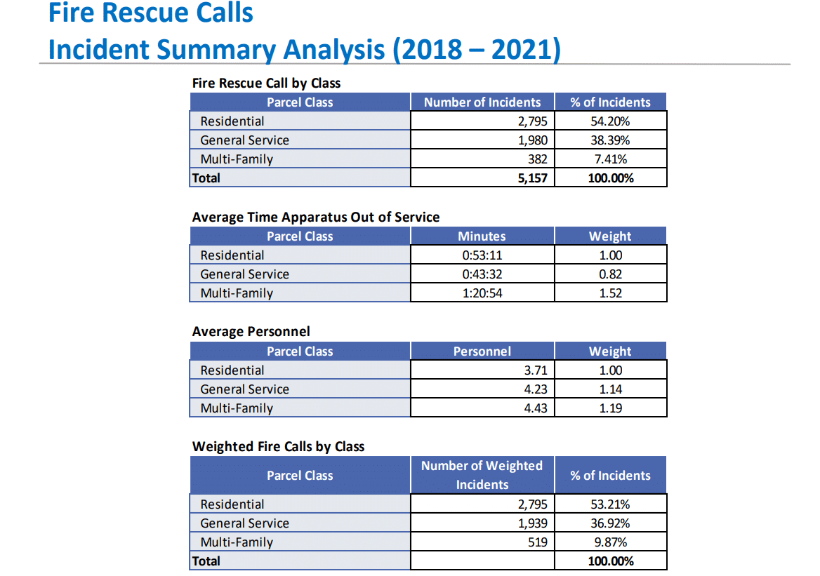 Three of the five Council members favored a rate that would weigh costs for different classes of property based on historical demand for fire protection services.