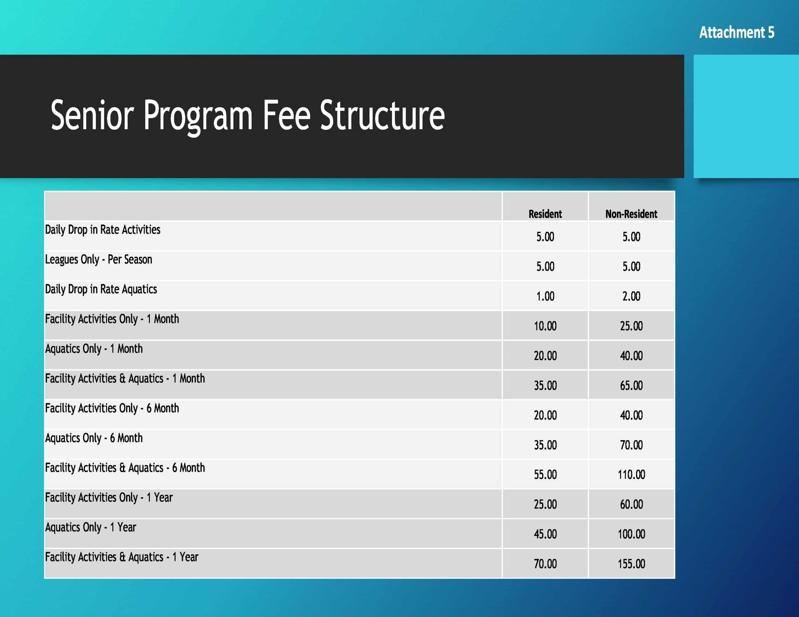 The resulting savings – $12,000 – will help fund the additional senior programming budget of $21,000. Operating account funding for Riverside Park will fund the remainder of the budget.