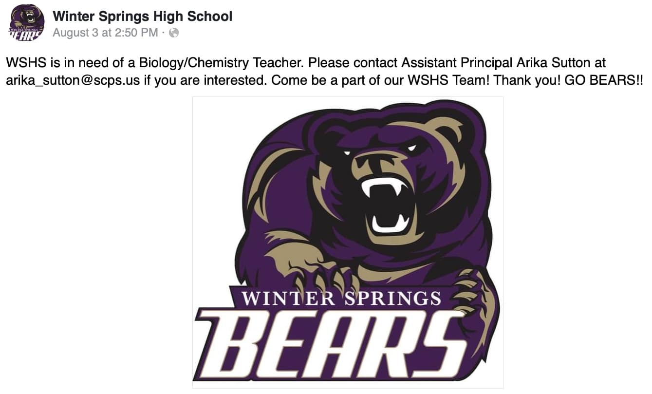 Although Winter Springs High School has filled all of its teaching positions this year, other schools in Seminole County were not as lucky.