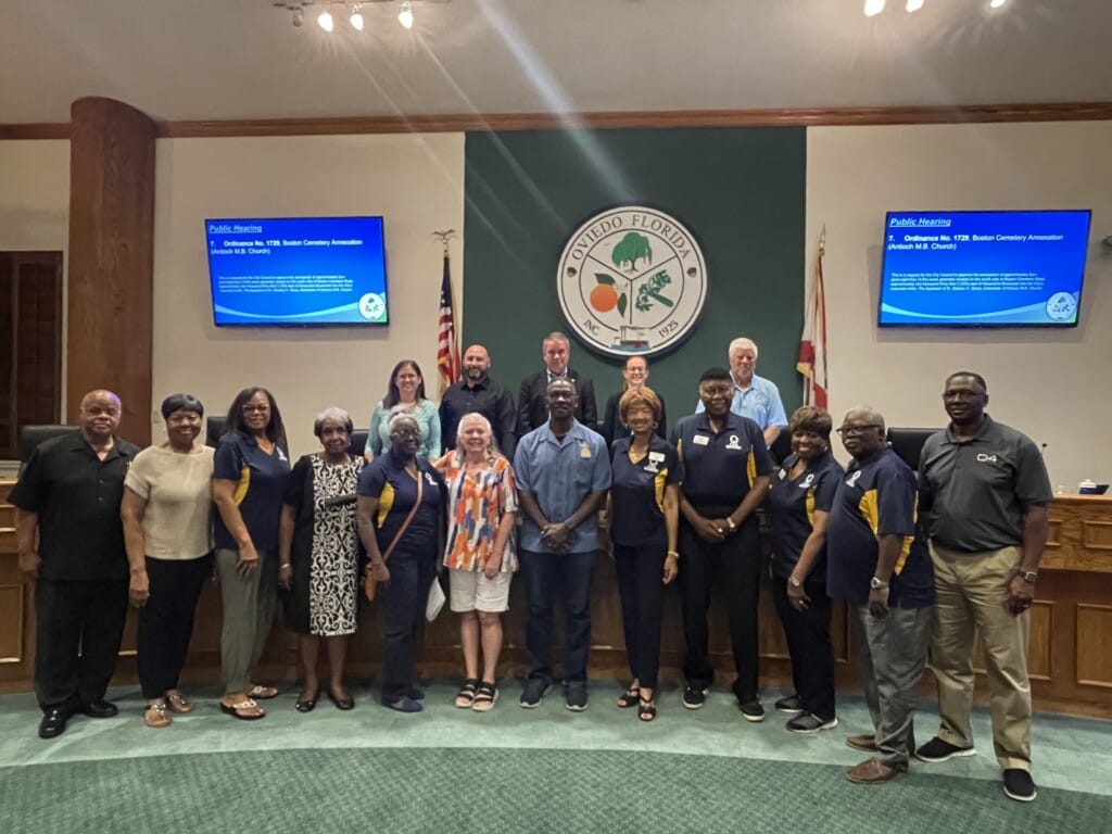 Nearly 100 years in the making, the Boston Cemetery is finally included in the City of Oviedo. In front of nearly a dozen supporters, the Oviedo City Council adopted the annexation of the cemetery, which had previously been an enclave despite its proximity to City Hall, in a 5-0 vote Monday night.