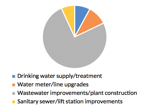 -Wastewater improvements/Wastewater treatment plant’s design and construction: $116 million