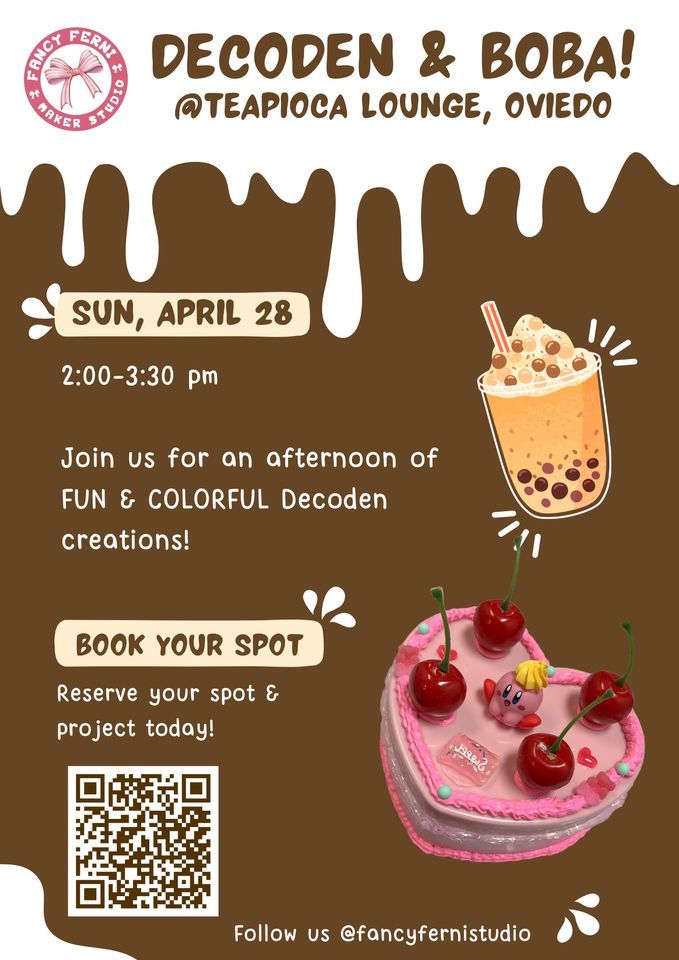 Join Teapioca Lounge for decoden making from 2-3:30 p.m. Sunday, April 28 at 15 Alafaya Woods Blvd, Suite 105, in Oviedo. Participants will learn to make decoden, a maximalist style of decorating using accessories. Learn more.