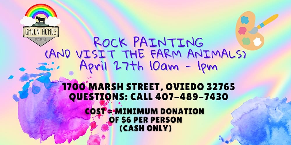 Take your kids to Green Acres Farm for a rock painting event from 10 a.m. to 1 p.m. Saturday, April 27 at 1700 Marsh St. in Oviedo. Children can also visit the farm animals after painting rocks. The cost is $6 per person. Learn more.