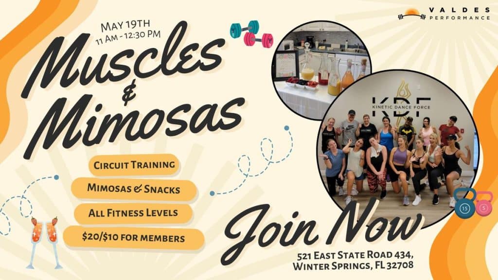 Combine a circuit workout class and brunch at Muscles & Mimosas from 11 a.m. to 12:30 p.m. Sunday, May 19 at Valdes Performance, 521 E. State Road 434 in Winter Springs. The cost is $20 for non-members and $10 for members. Learn more.