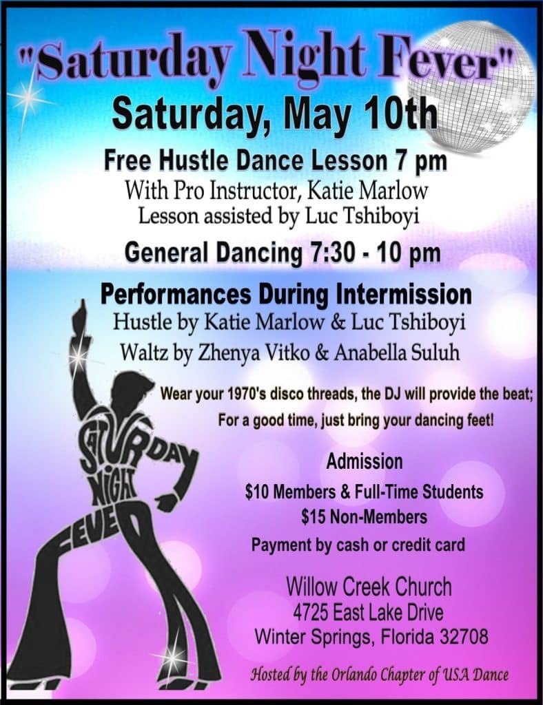 Do the hustle! It’s a Saturday Night Fever dance night, featuring a free hustle dance lesson. The lesson is at 7 p.m. and the rest of the dance goes until 10 p.m. on Saturday, May 10 at Willow Creek Church, 4725 E. Lake Drive, Winter Springs. Admission is $10 for members and $15 for non-members. Learn more.