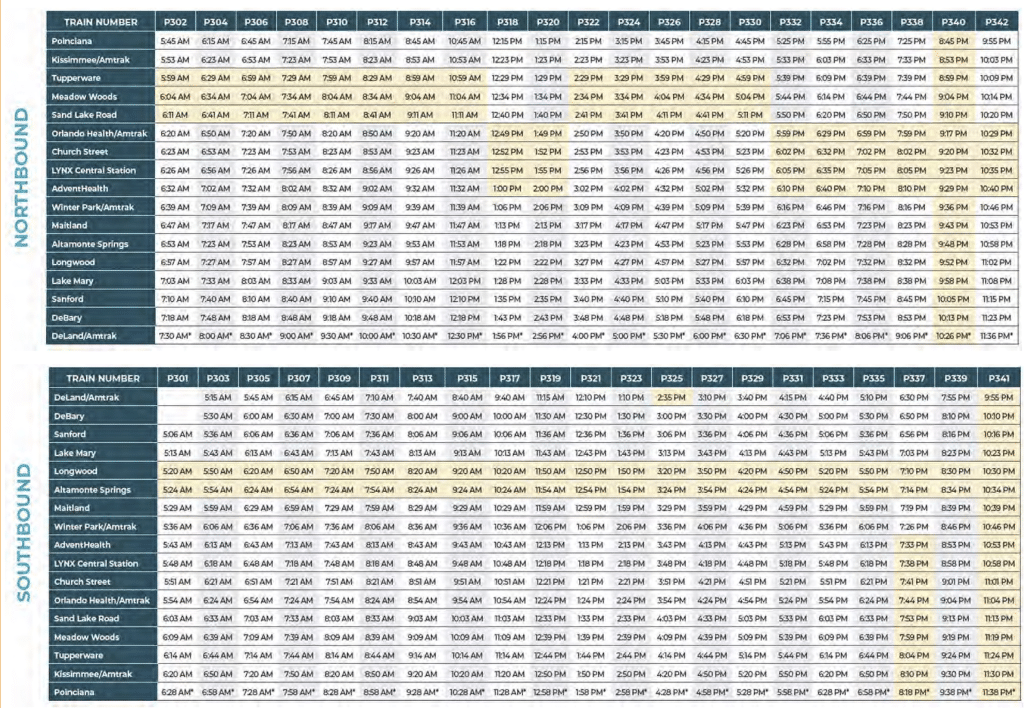 The latest train, in a proposed new schedule, would leave DeLand at 9:56 p.m., stopping at every stop along the traditional southbound route, including Seminole County stops in Sanford, Lake Mary, Longwood and Altamonte Springs.