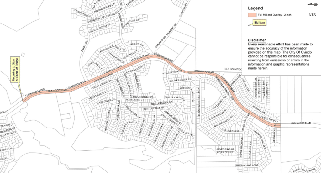 About 575,000 square feet will be repaved in this project, according to Stewart. – Photo courtesy of City of Oviedo’s engineering department