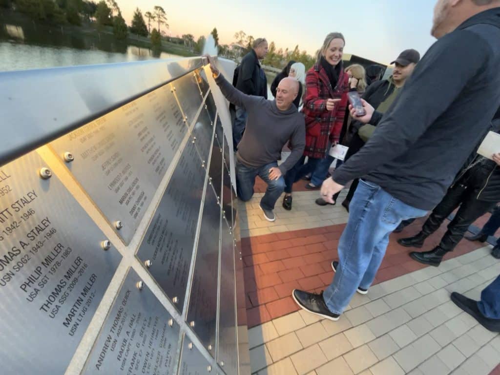 As night settled over the tribute and temperatures began to drop, families and veterans continued observing the newly engraved names, some running their fingers across the surface, while others stood back, taking everything in from afar.