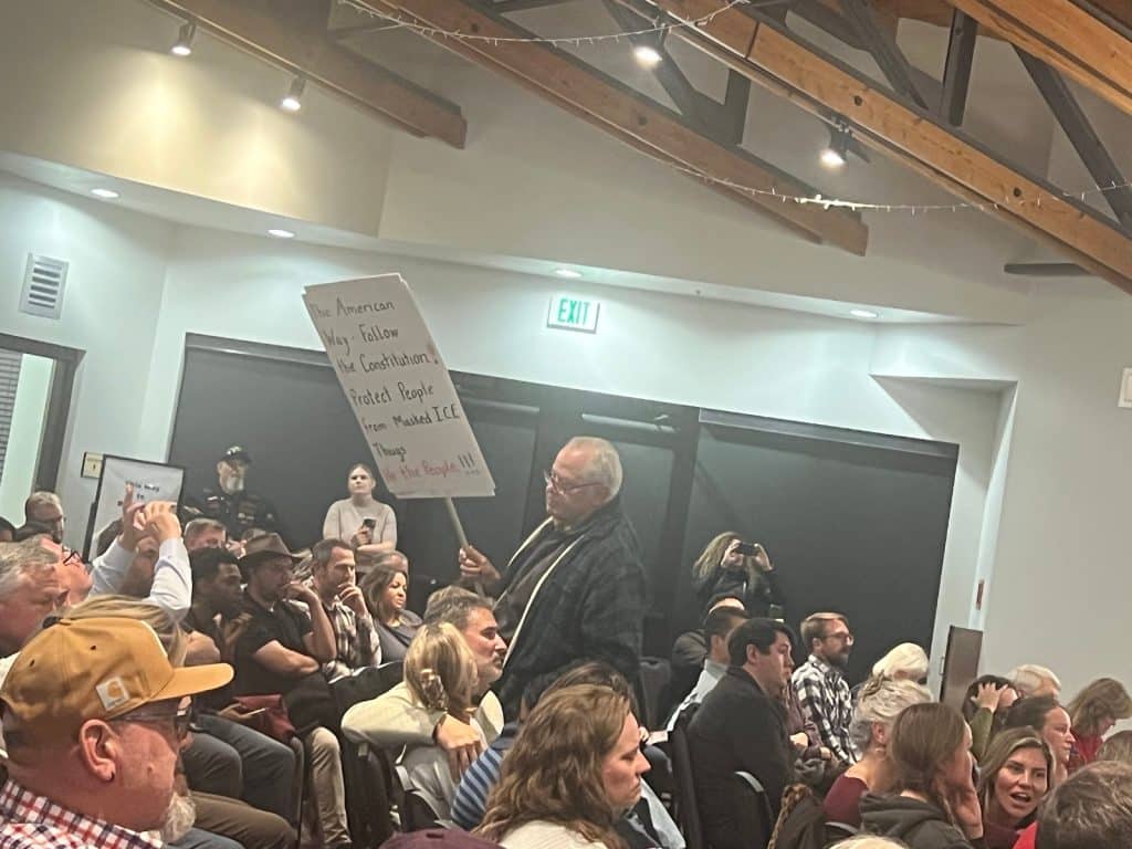 The animated back-and-forth between Andrade, other audience members and Mills lasted for more than five minutes before a single written question was asked, and covered a multitude of subjects, including wealth inequality, ICE and immigration enforcement, and the recent killing of U.S. citizens Renee Good and Alex Pretti in Minnesota.