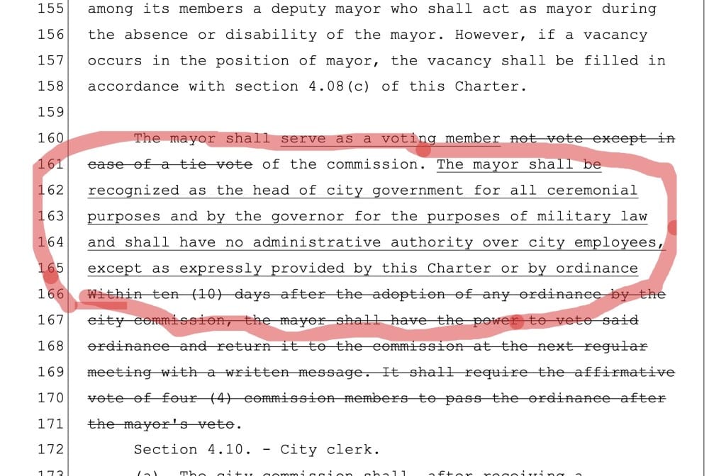 “The bill provides that the mayor, who previously had no administrative authority, now has administrative authority over city employees as provided by city charter or ordinance,” an analysis of the bill reads.
