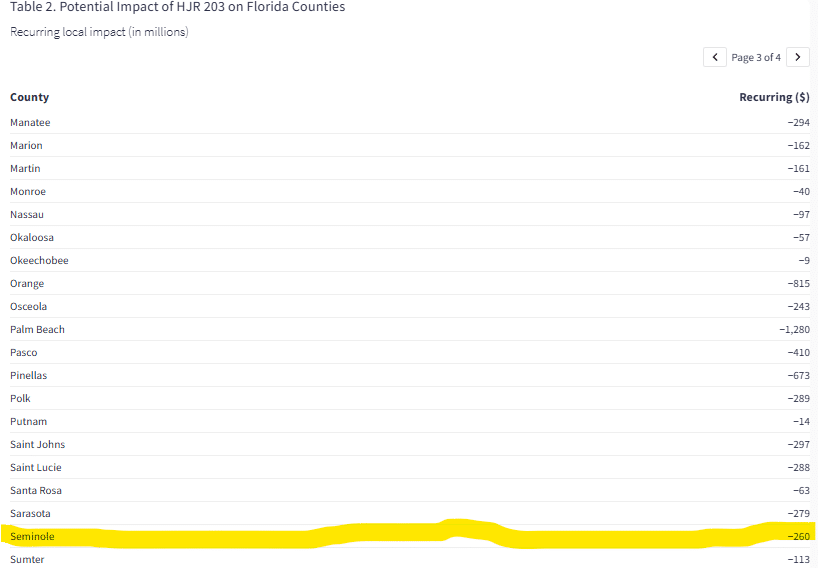 That would also include a $260 million loss for governments in Seminole County, including the county and city governments.