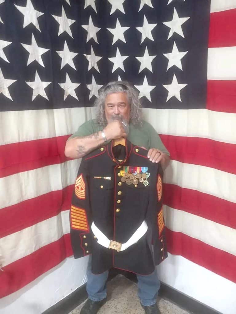 One of the most intricate uniforms Vaughan has recreated was for Marine Corps Master Gunnery Sgt. Alex G. Middleton, with over 28 years of experience.
