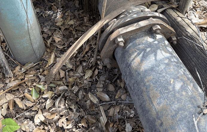 Separately, the city also discovered that an above-ground support structure for a wastewater main pipe had also failed, leaving the pipe lying on the ground. Because the pipe is on the ground, it’s created a bow in the line – which could cause a spill.