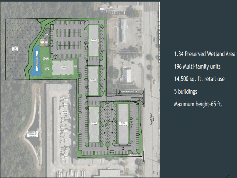 A zoning and land-use change that could clear the way for 196 apartments and 14,500 square feet of commercial space on 8 acres of wooded land along Alafaya Trail was […]